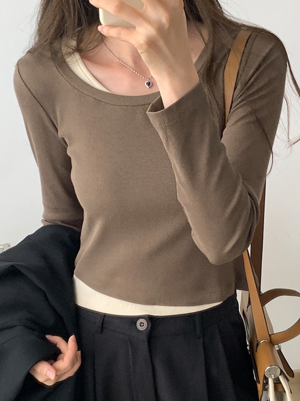 Contrast Color Fake Two Piece Long Sleeve Knit