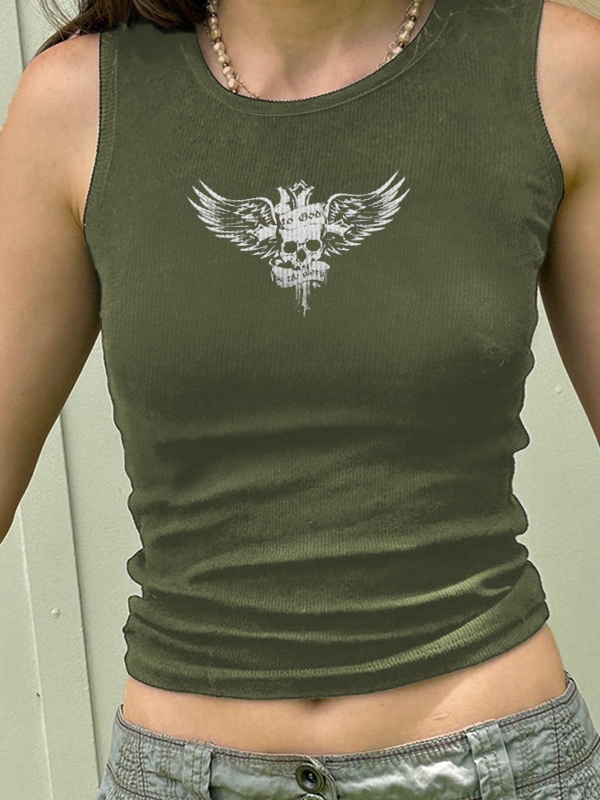 Skull Print Ribbed Tank Top