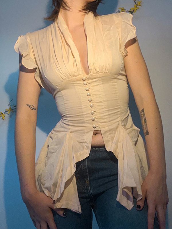 Solid Color Ruffled Long Sleeve Tee