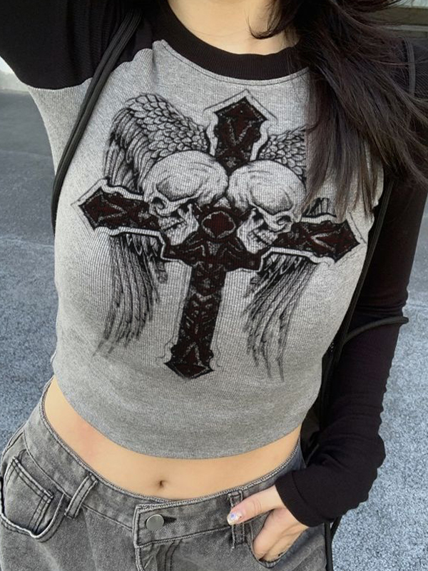 Skull Cross Print Raglan Long Sleeve Knit