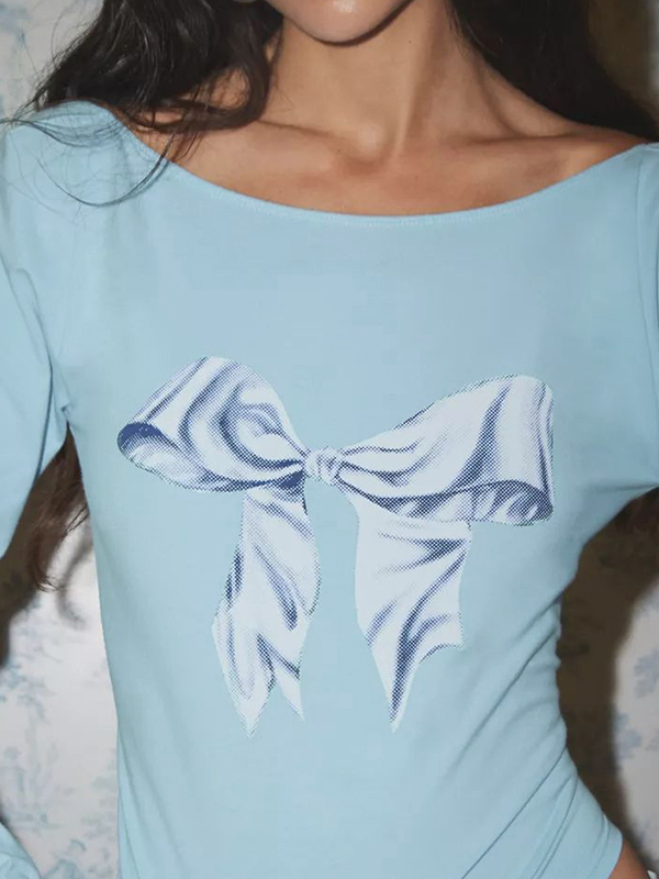 Bow Print Backless Long Sleeve Tee
