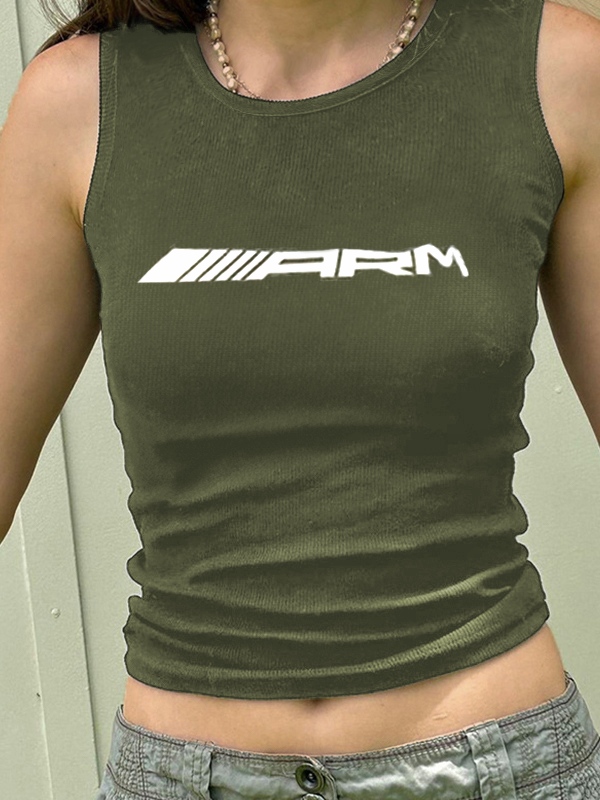 Letter Print Ribbed Cropped Tank Top