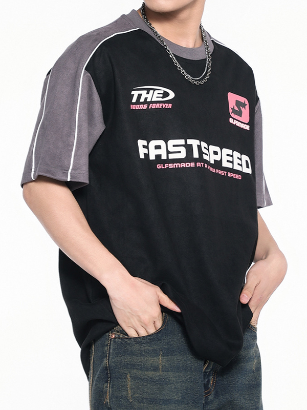 Motorcycle Unisex Spliced Raglan Sleeve Oversized Short Sleeve Tee