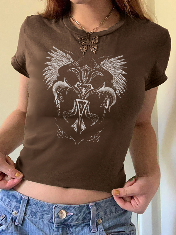 Vintage Cross Flower Print Slim Long Sleeve Tee
