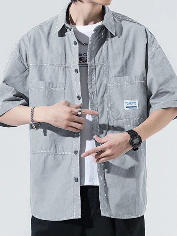 Solid Color Japanese Workwear Short Sleeve