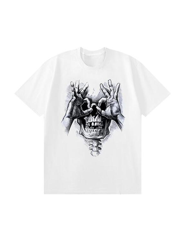 Skull with OK Pattern Graphic Casual Black Print T-shirt