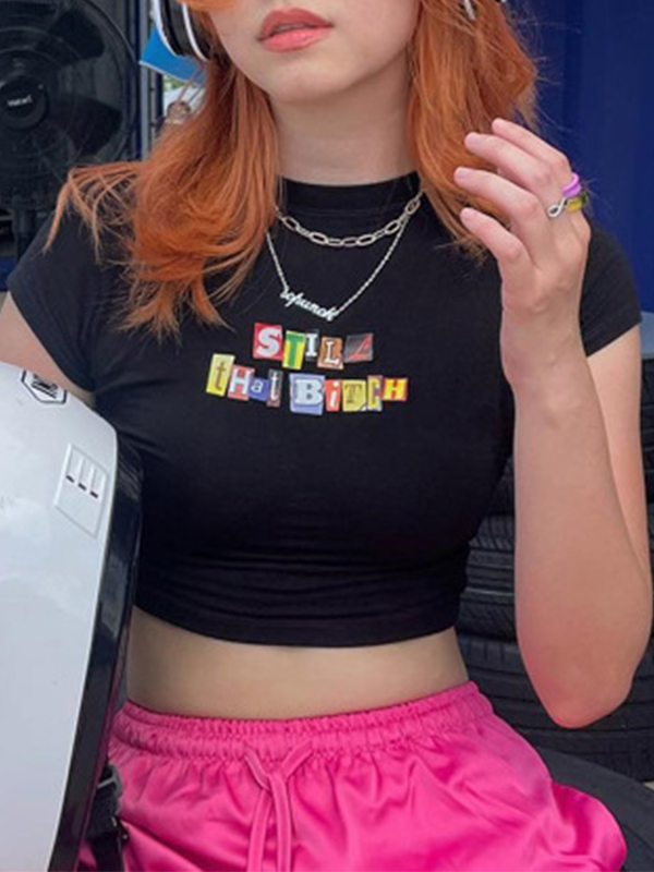 Letter Print Pullover Cropped Short Sleeve Tee