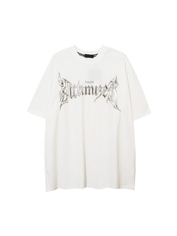 V Neck Letter Print Oversized Short Sleeve Tee
