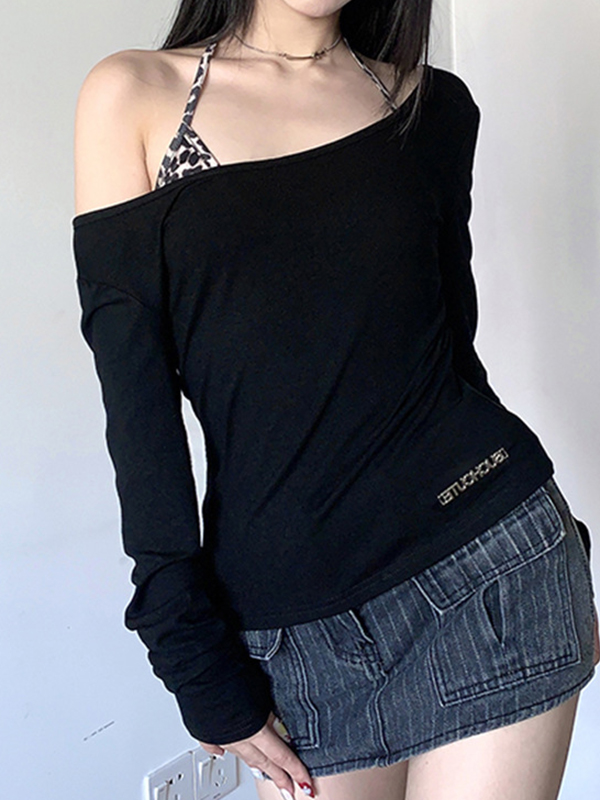 Spider Print Loose Casual Black Long Sleeves Tee