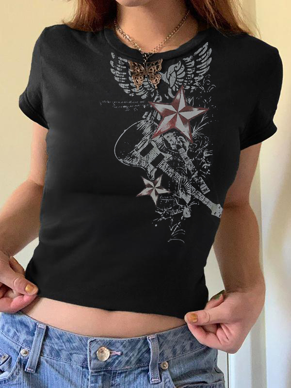 Vintage Butterfly Print Oversized Short Sleeve Tee