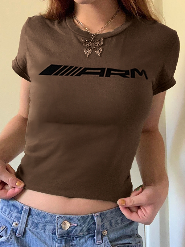 Vintage Brown Letter Print Short Sleeve Tee