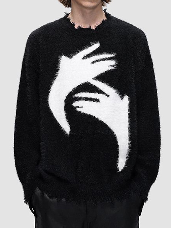 Three Dimensional Flower Decor Crew Neck Knit Cardigan