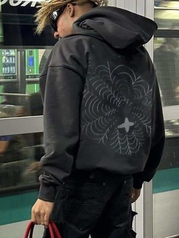 Men’s Spider Web Print Oversized Hoodie