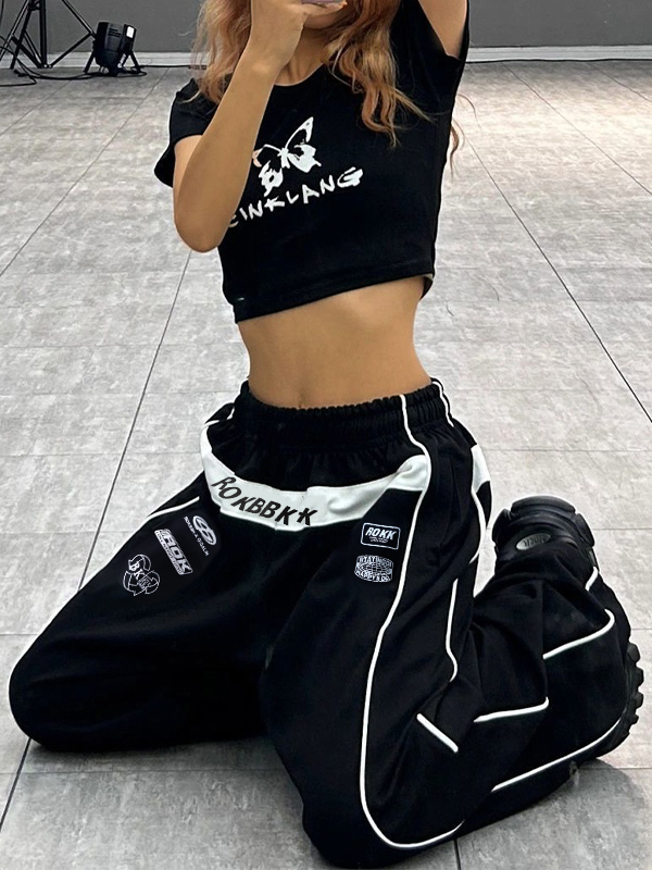 Trendy Design: The eye catching white line on the side of the pant adds a cool and hip pop vibe, while the unique badge print's embellishment gives a vintage and streetStyle look.