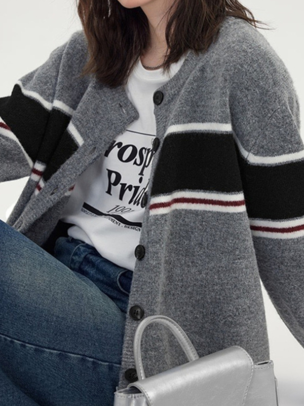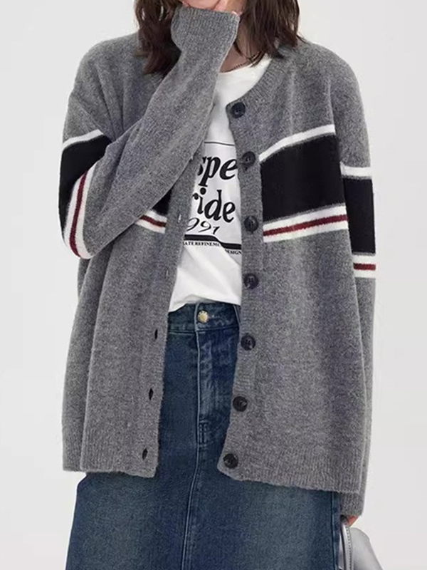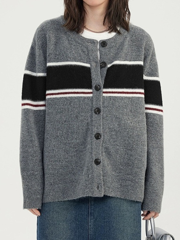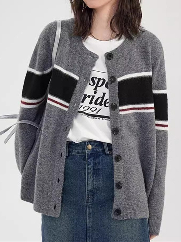 Be the first to review “Contrast Stripe Crewneck Loose Cardigan”