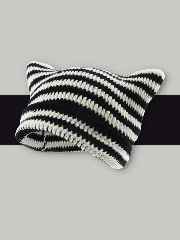 Be the first to review “Ear Design Contrast Striped Beanie Hat”