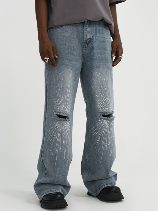 Be the first to review “Men’s Firework Rhinestone Print Ripped Straight Leg Jeans”