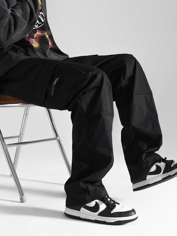 Description: These chic city boy cargo pants sit to a stretch tie waist design, features zipper pockets patched, with a straight-leg silhouette and ruched detail to the leg.
