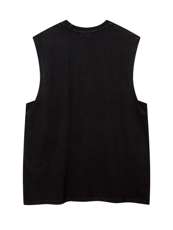 Men’s Vintage Washed Distressed Letter Print Vest
