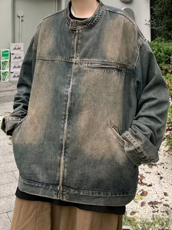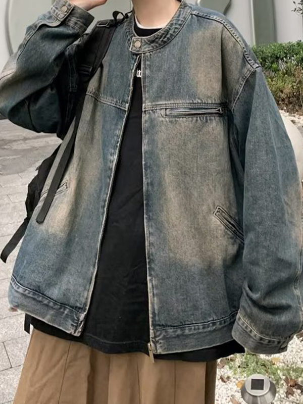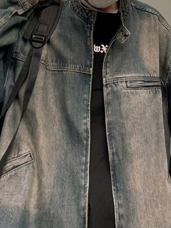 Cool Denim Design: The vintage denim design with a modern twist gives this jacket a unique and trendy look.