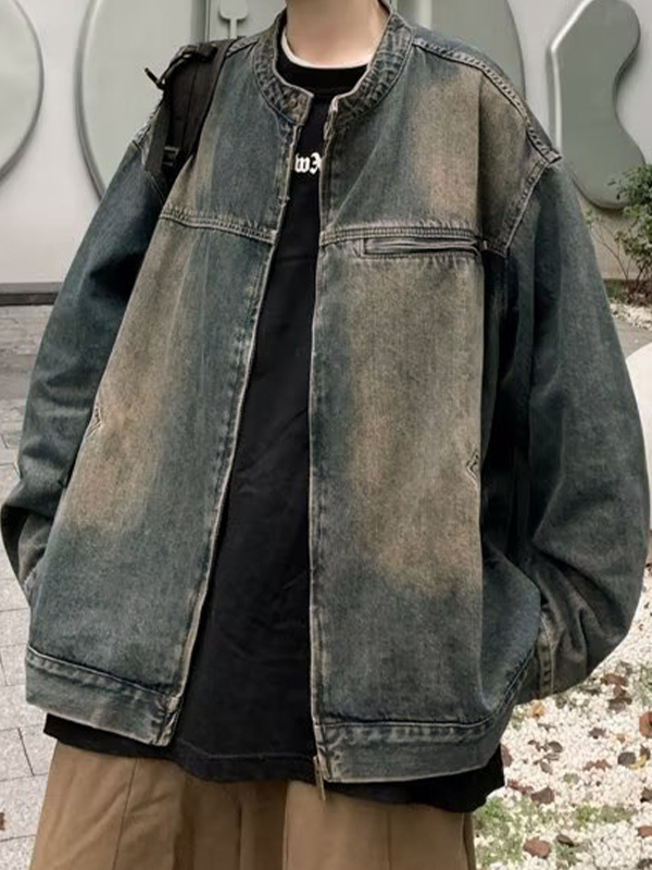Be the first to review “Men’s Vintage Zip Up Design Denim Jacket”
