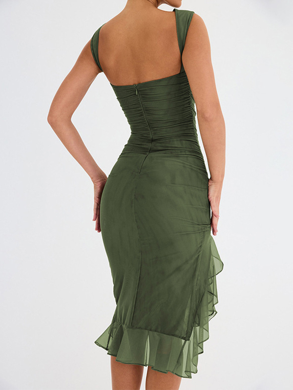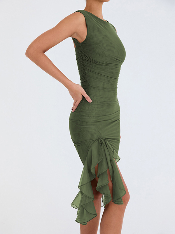 Round Neck Sleeveless Bodycon Backless Pleated Mini Dress