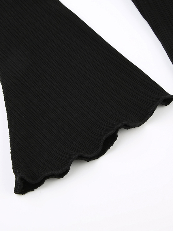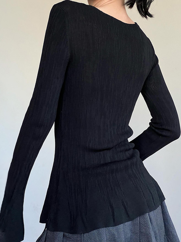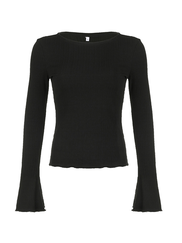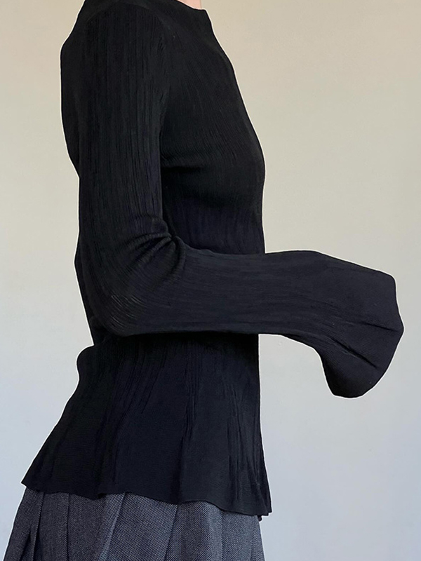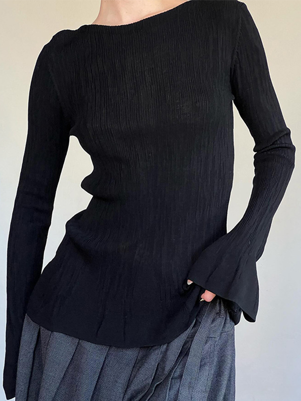Solid Textured Trumpet Sleeve Long Sleeve Knit