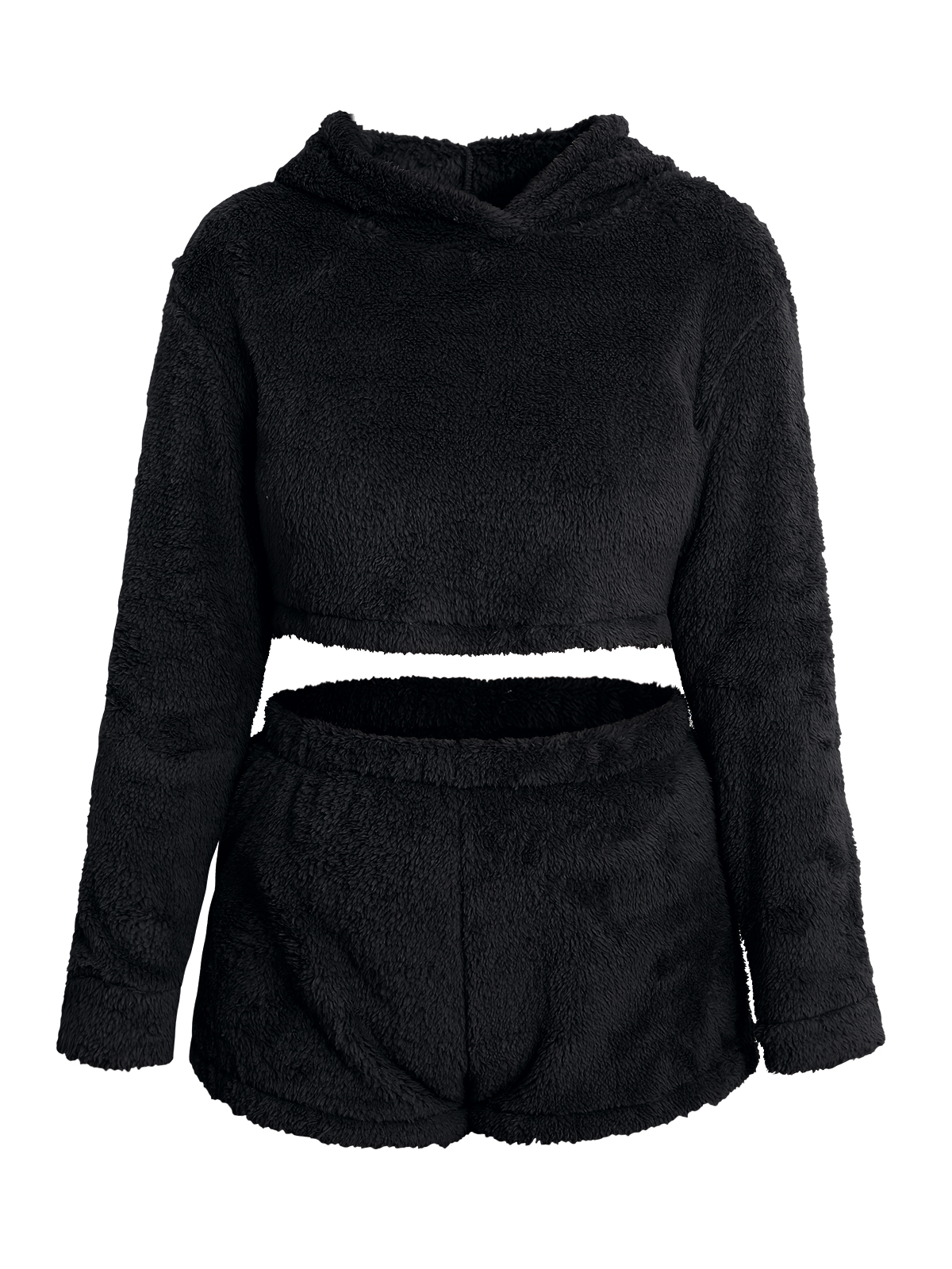 Teddy Solid Crop Top&Shorts Lounge Set