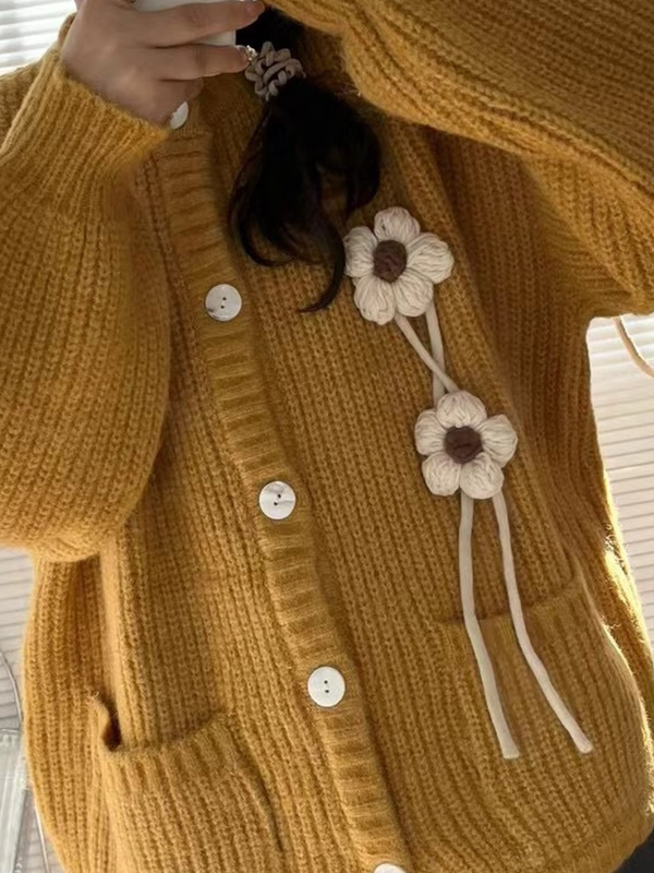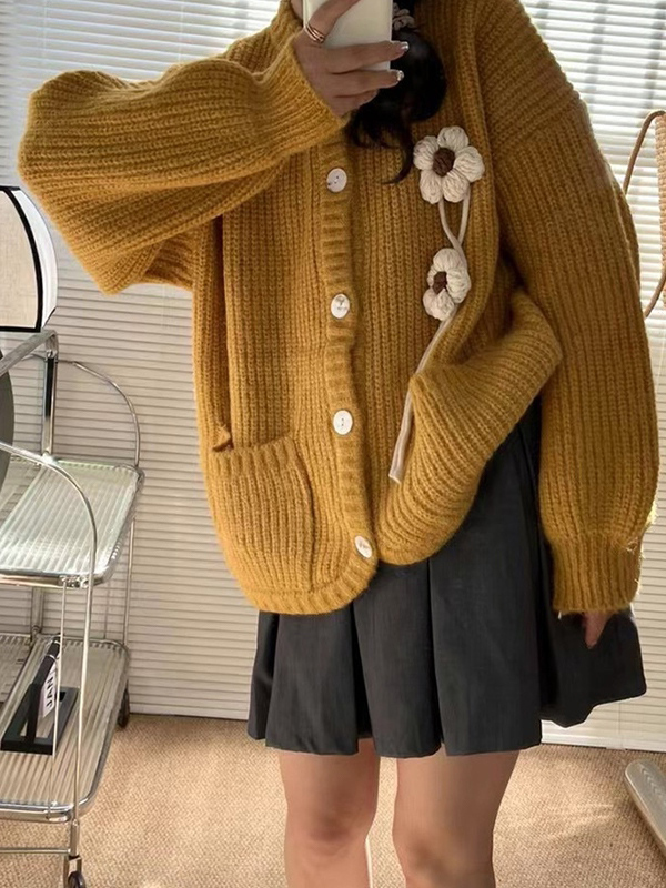 Be the first to review “Three Dimensional Flower Decor Crew Neck Knit Cardigan”