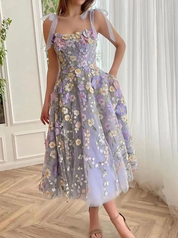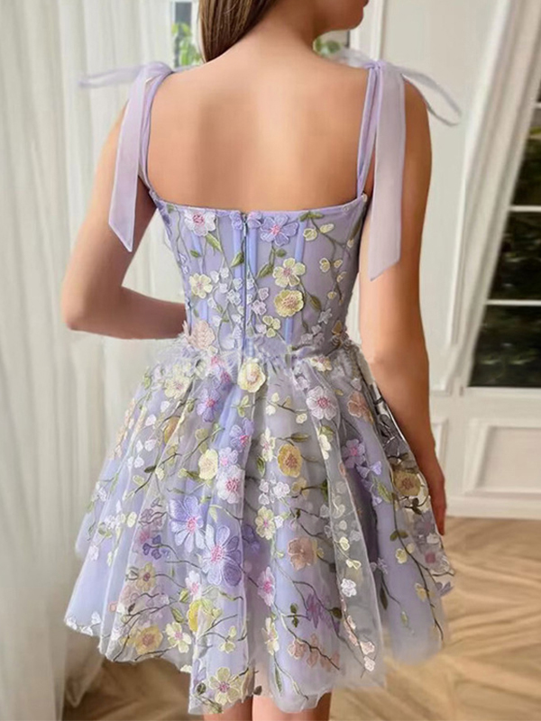 Three-Dimensional Flower Embroidery Hip-Covering Sexy Suspender Belt Mini Dress