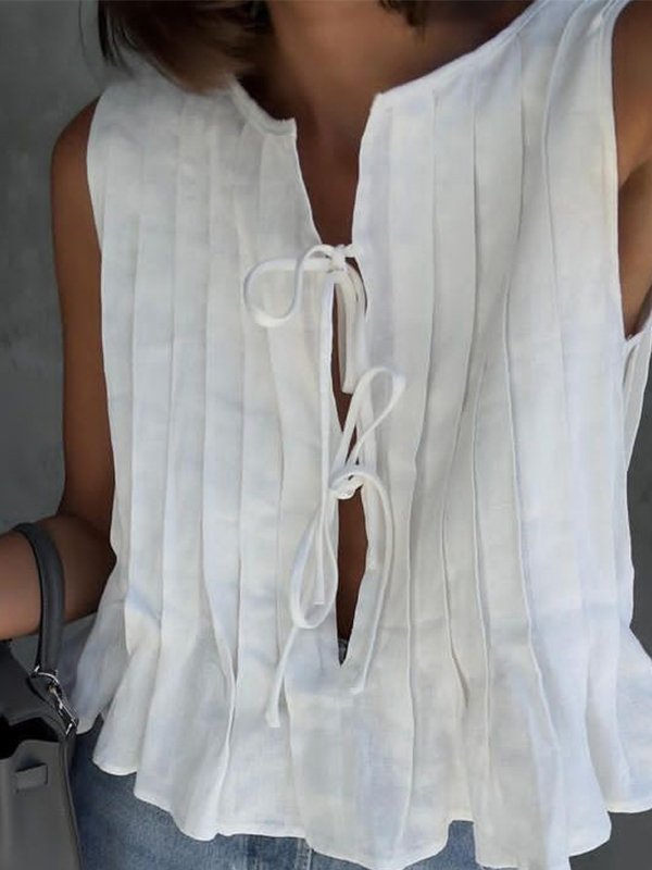 Tie strap cotton and linen vest