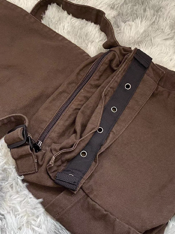 Details: These retro messenger bags have mixed label patched design on the front, paneled with eyelet strap detailing, and fastened metal zip fly design.