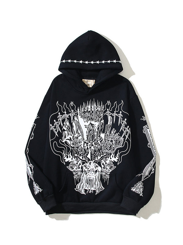 Men’s Street Print Kangaroo Pocket Lacing Oversized Hoodie
