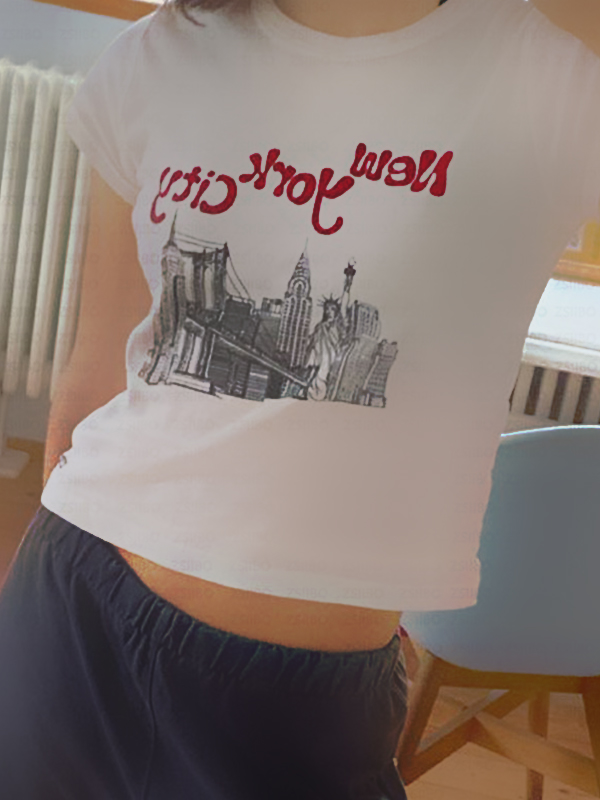 Letter Print Crew Neck Cropped Short Sleeve Tee