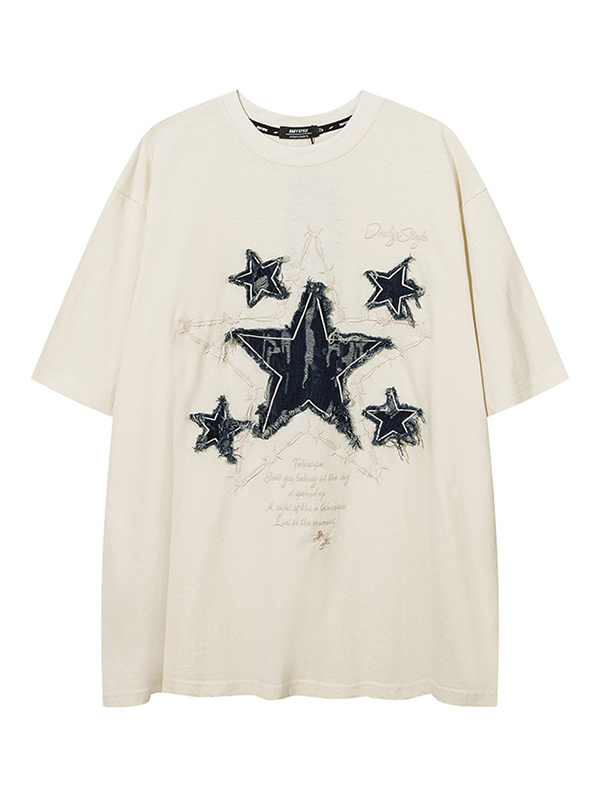 Cross Letter Printed Bubble Sleeve Short Sleeve Tee